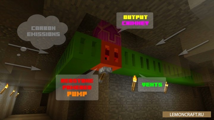 Мод Pollution of the Realms придает больше реализма игре, ведь после его установки воздух в вашем мире будет загрязняться вредными выбросами. После установки мода, при сжигании топлива, в атмосферу будут выделятся вредные вещества - углерода и серы. Вам придется контролировать процесс выброса вредных веществ. Если этим не заниматься, вся флора и фауна в вашем мире может погибнуть.